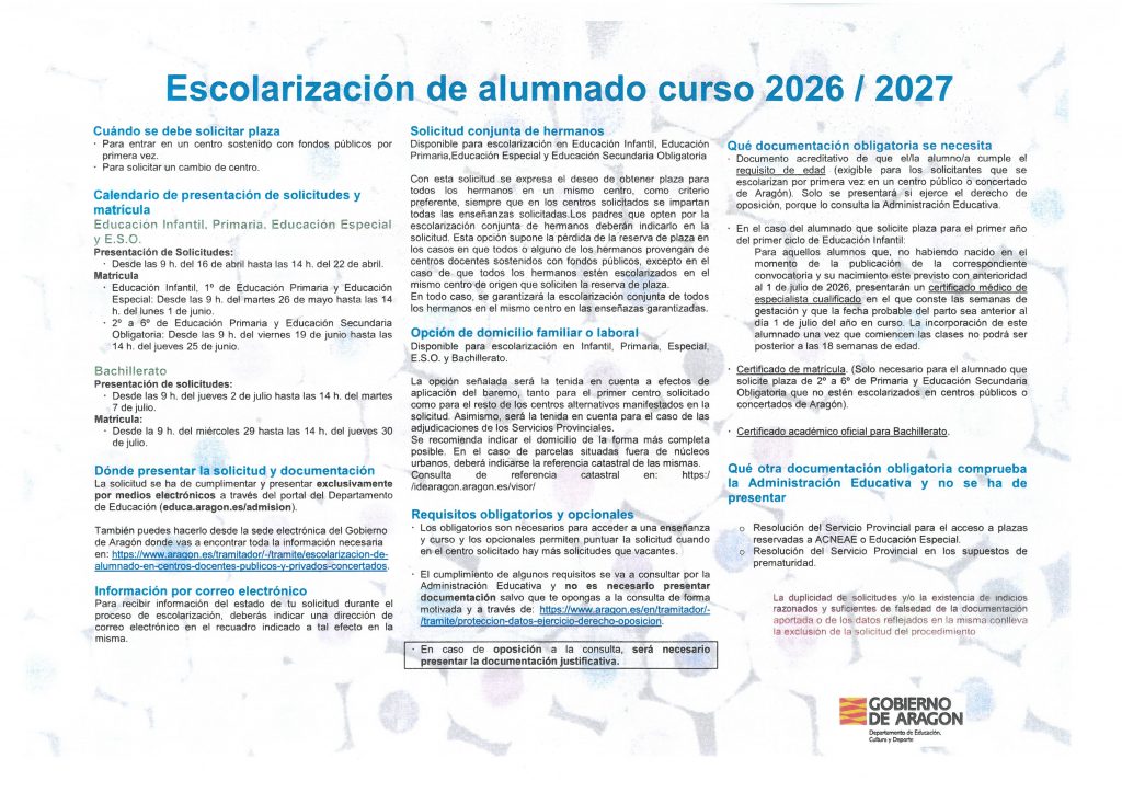 PROCESO ESCOLARIZACIÓN CURSO 26-27